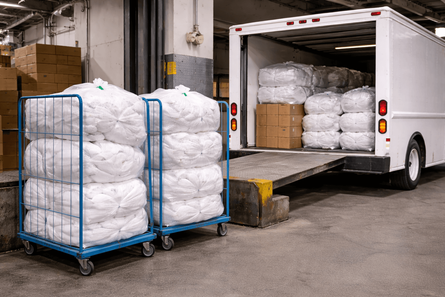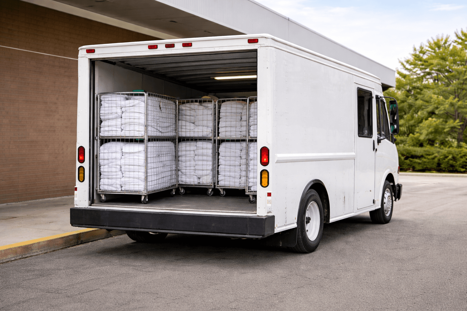 Consistent pickup and delivery with professional industrial laundry for commercial clients.